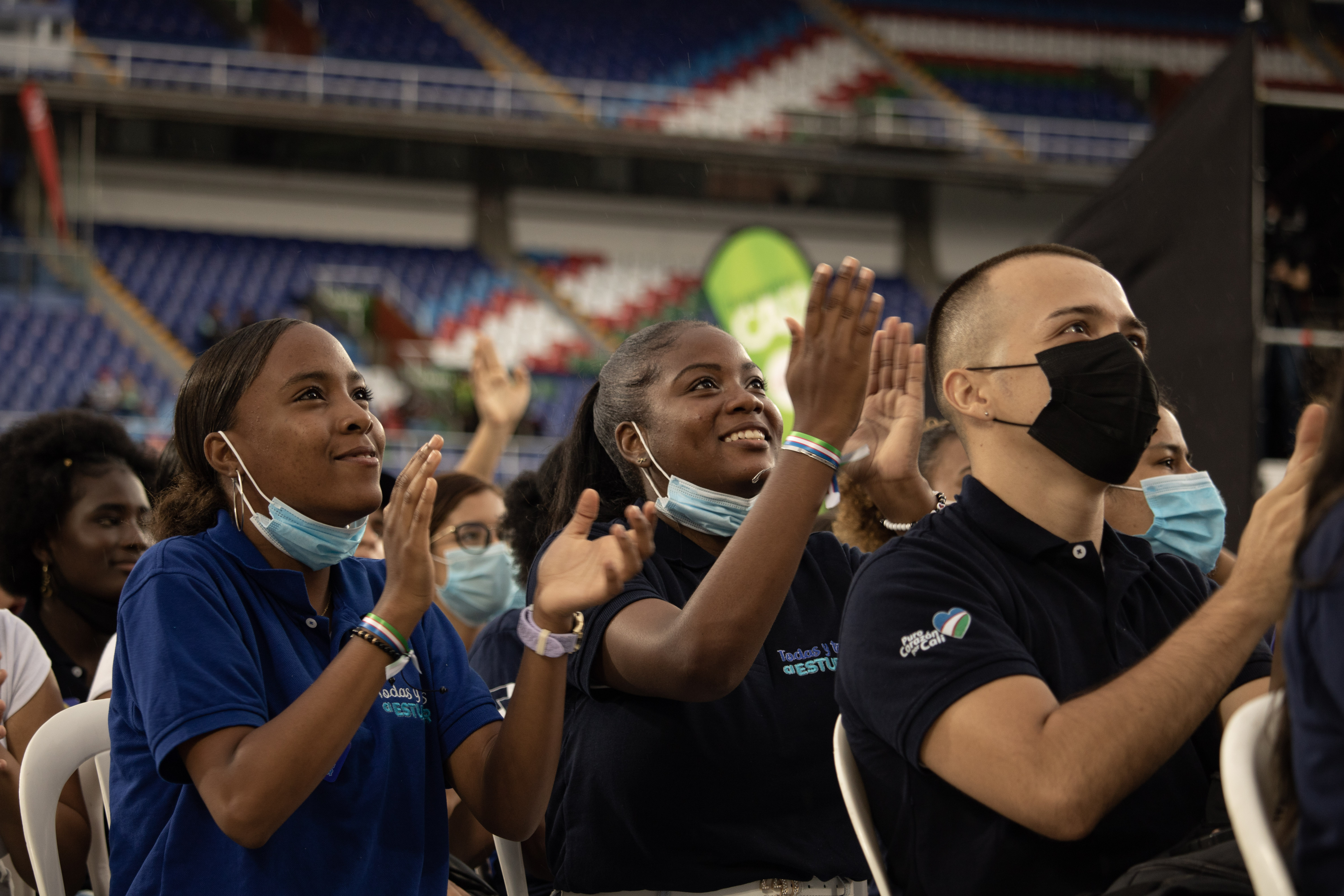 ¡Me comprometo! Con ese grito atronador que inundó la gramilla del Estadio Olímpico Pascual Guerrero como una celebración de gol, los 7000 beneficiarios del Programa Todas y todos a estudiar y sus familias tomaron el juramento que marcó el inicio de una nueva etapa en su vida donde un mejor futuro, con acceso a la educación superior, es posible.