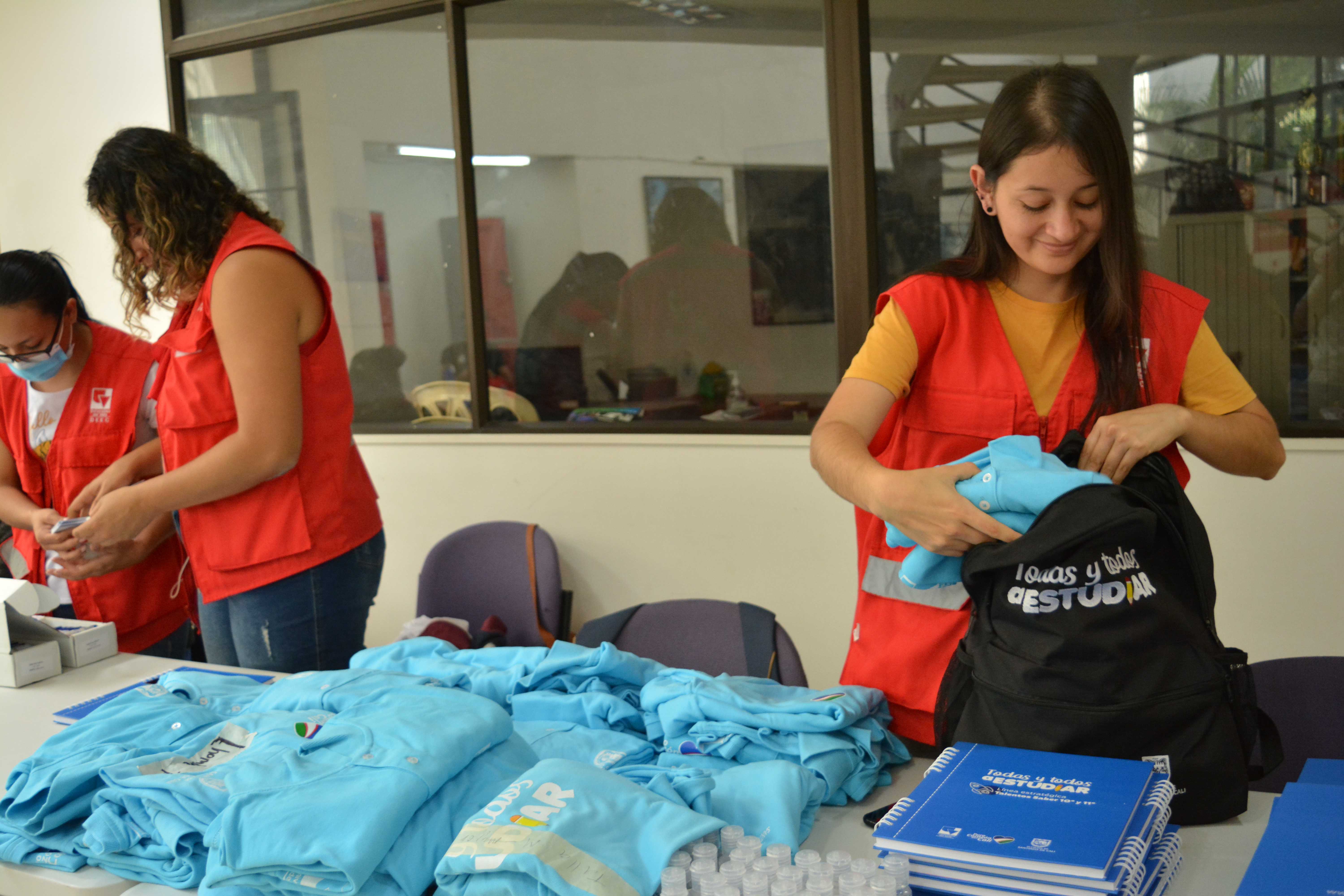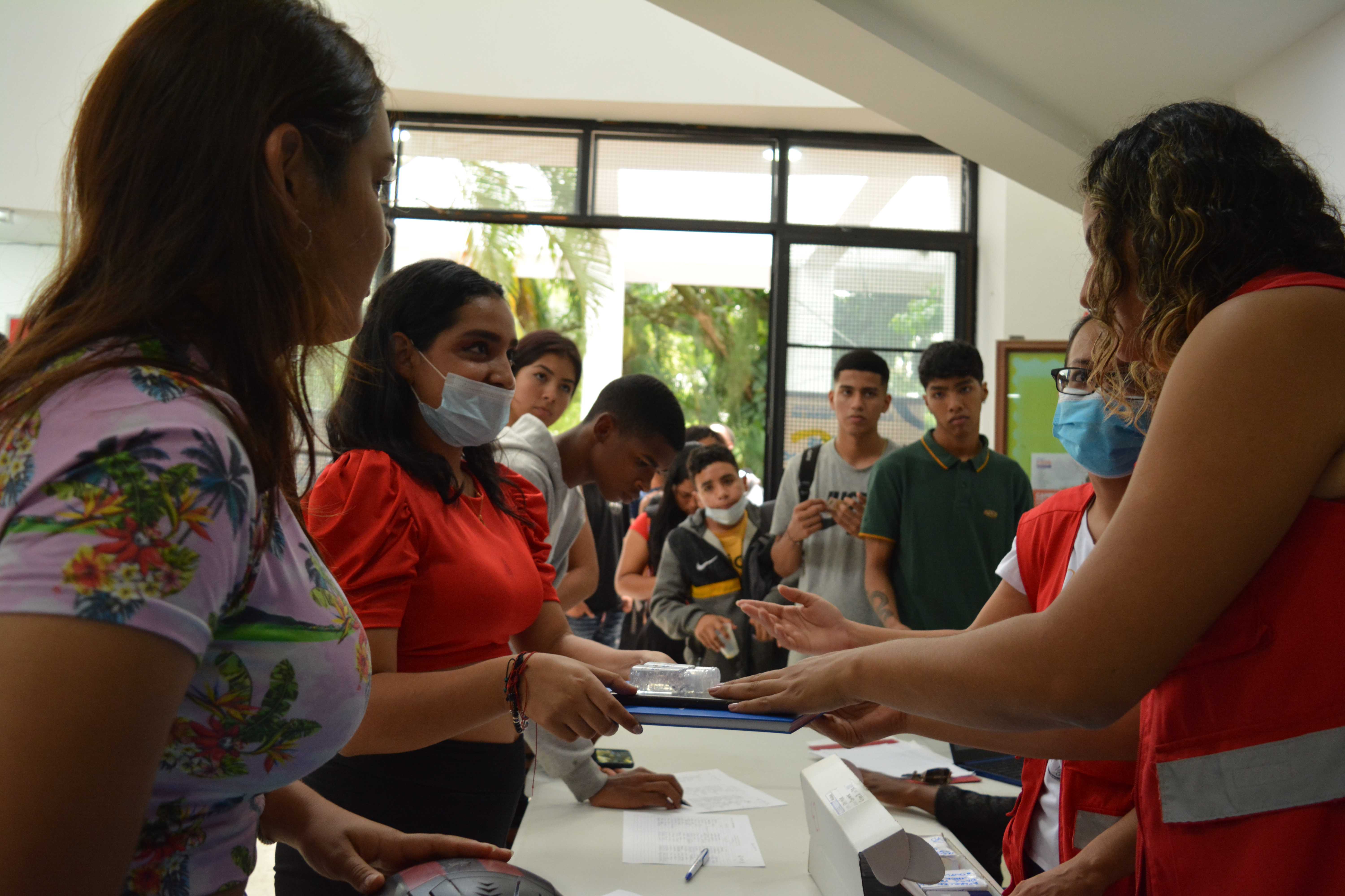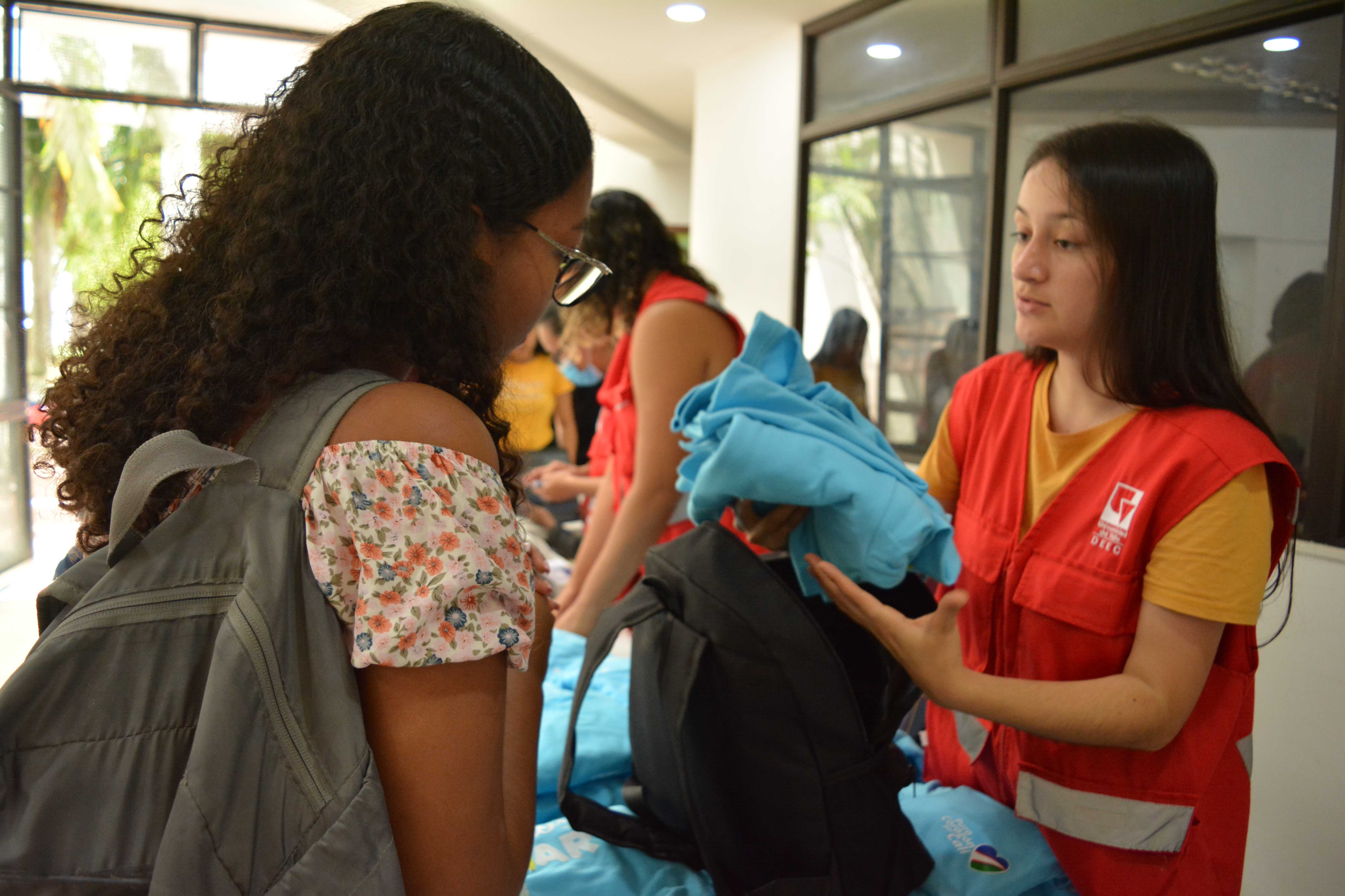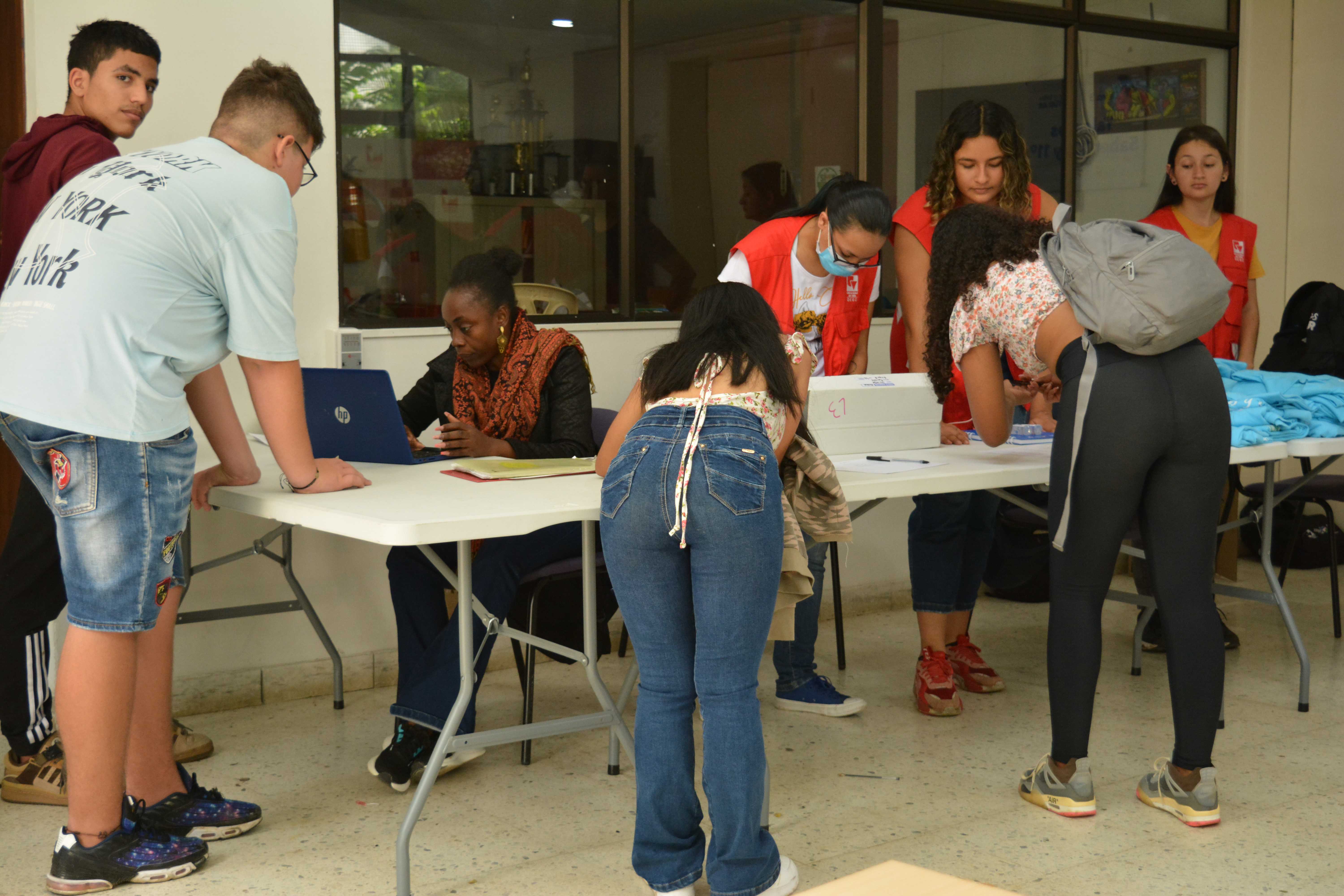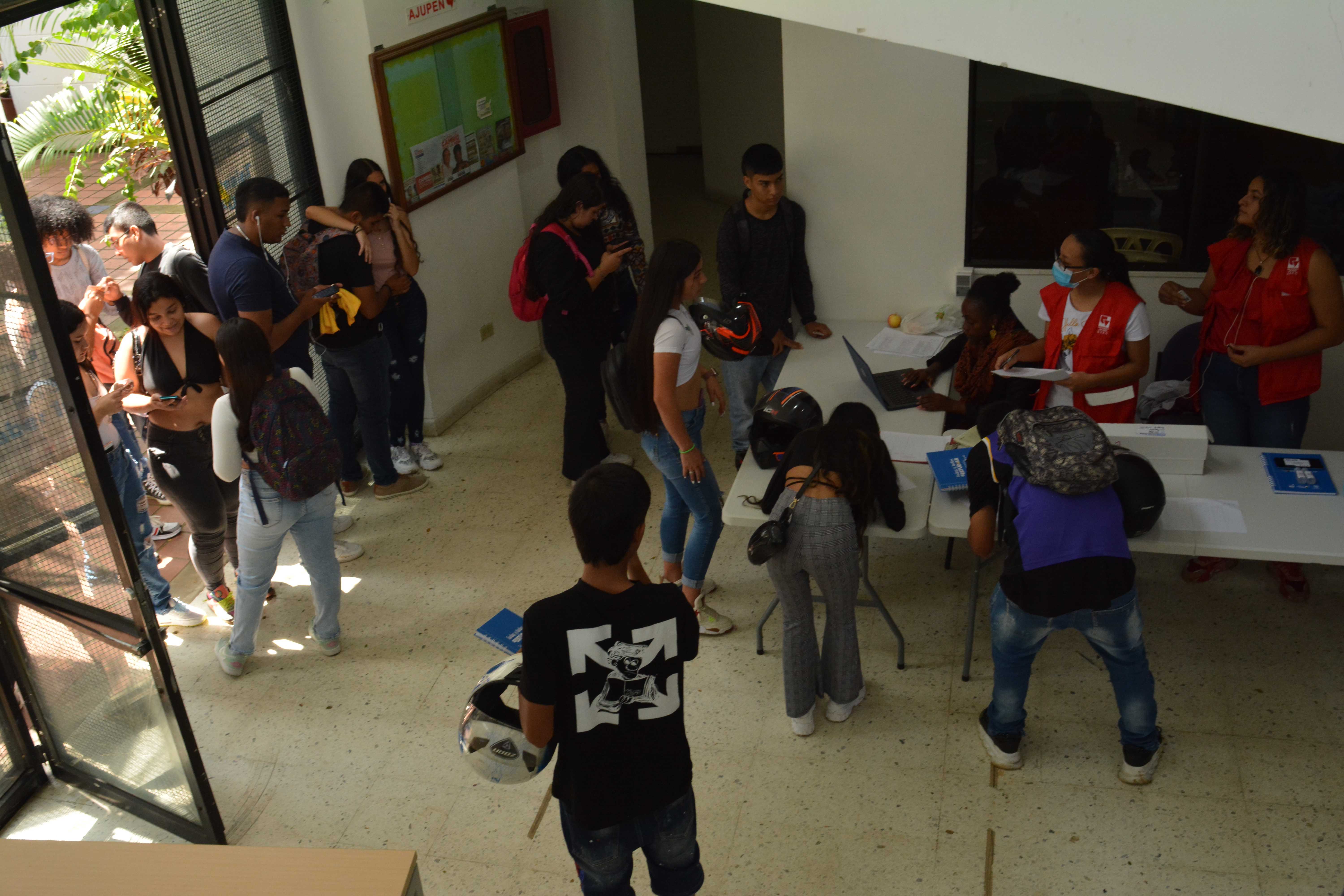 Escenario para la entrega de kits académicos que estaban pendientes de la Línea 3: Talentos Saber 10º y 11º. Algunos beneficiarios(as) que no asistieron a la primera sesión de entrega, tuvieron la oportunidad de reclamar el kit completo en este encuentro o complementarlo; el espacio de entrega fue en el edificio Ágora de la Universidad del Valle – Meléndez.