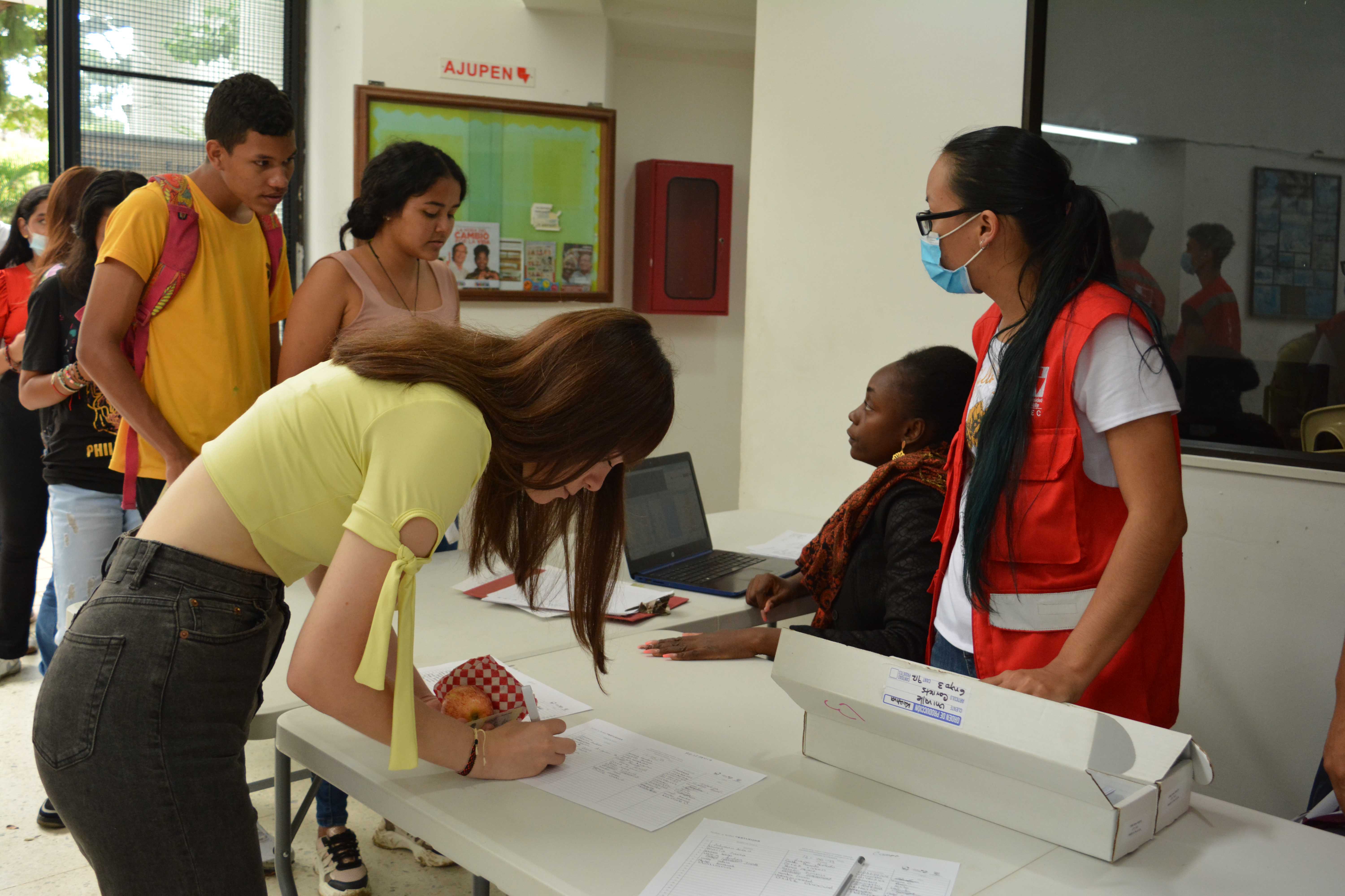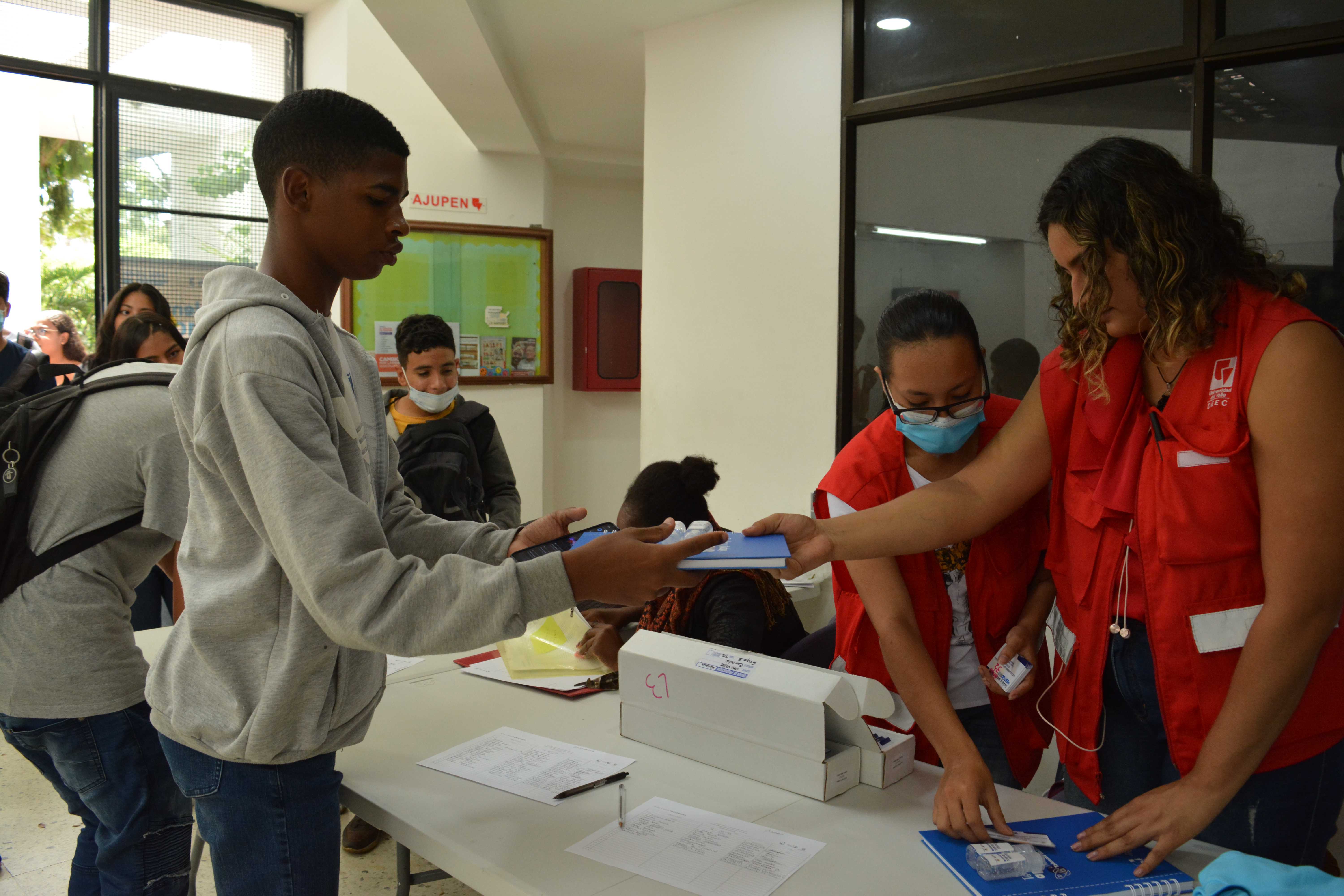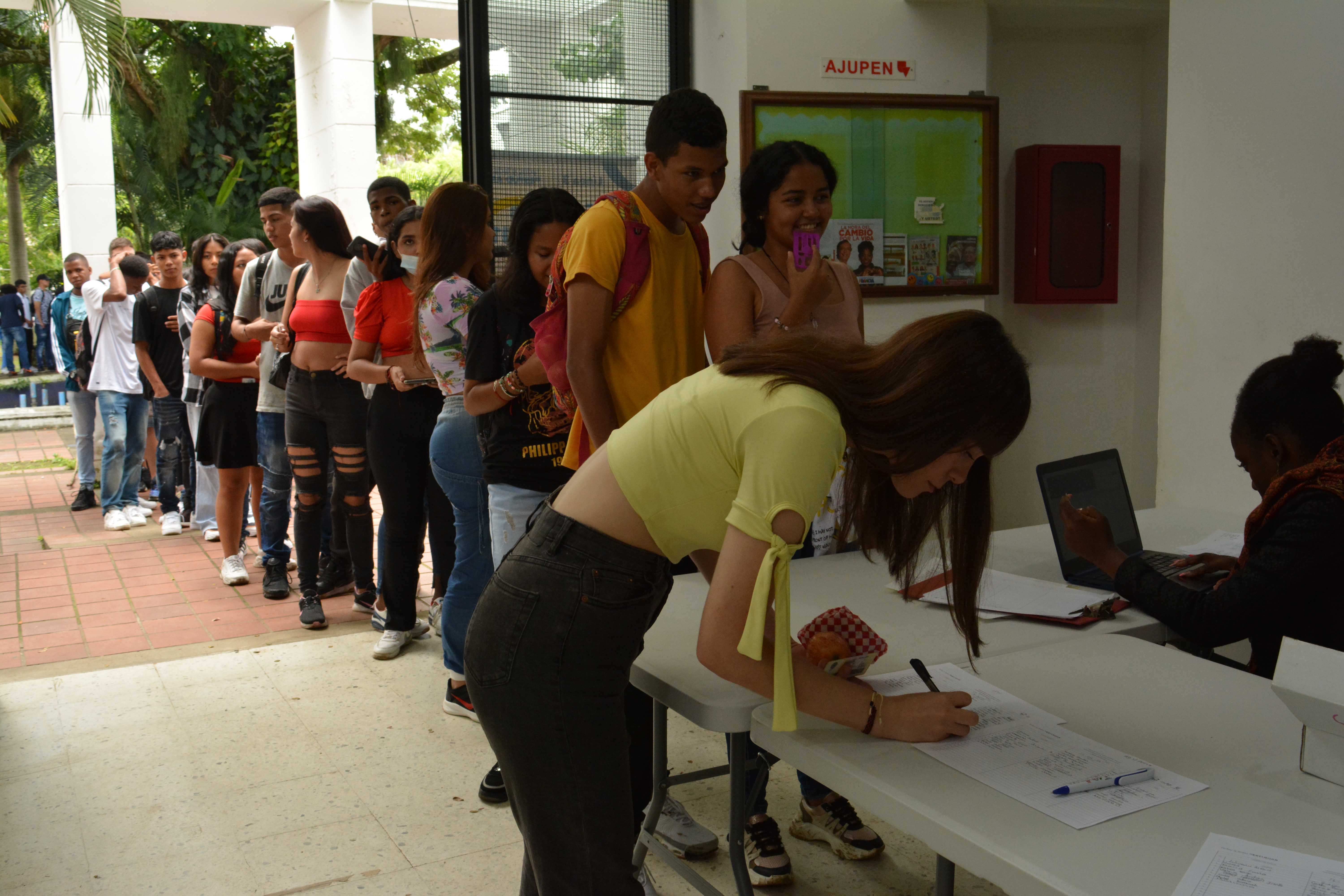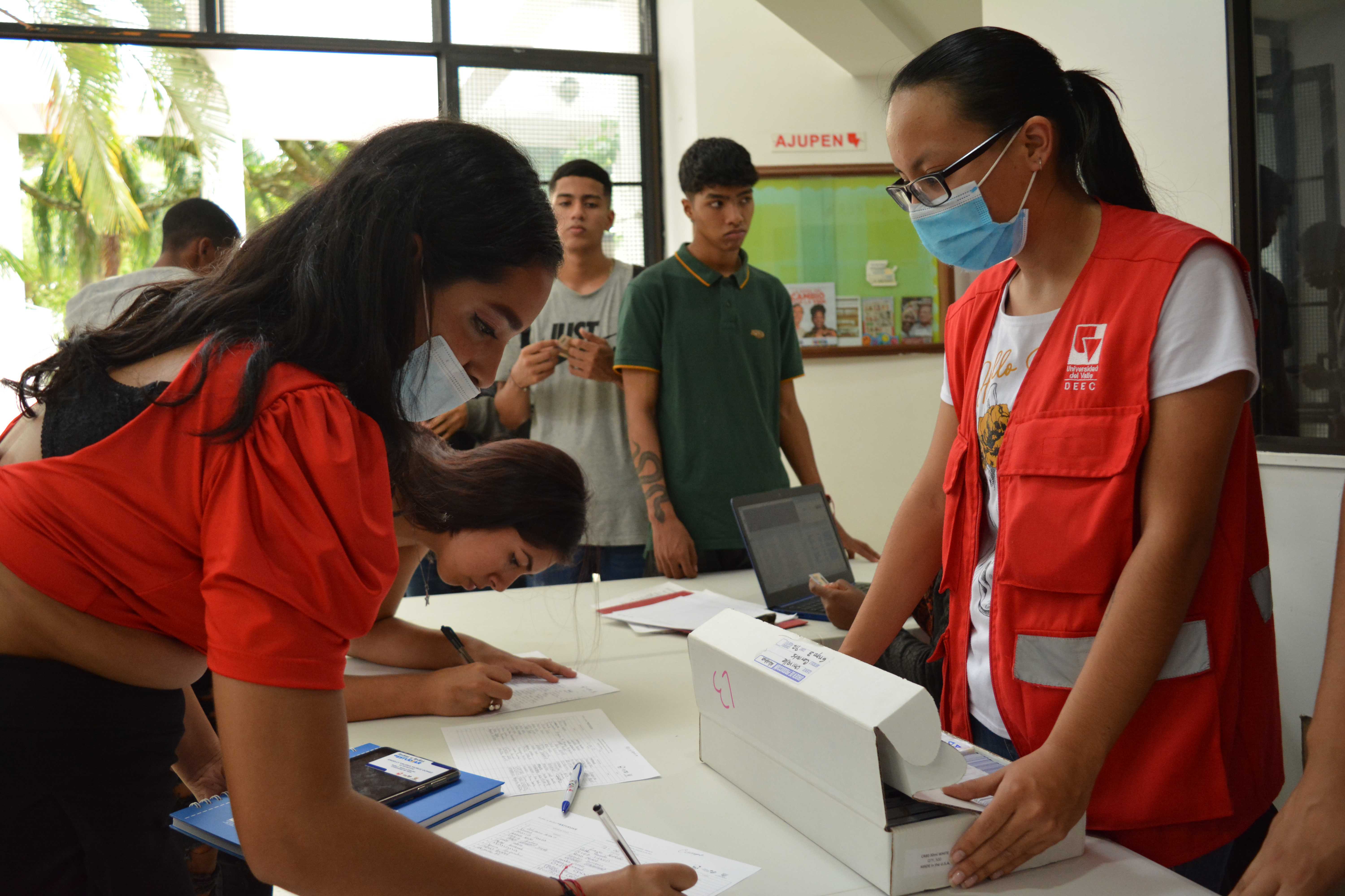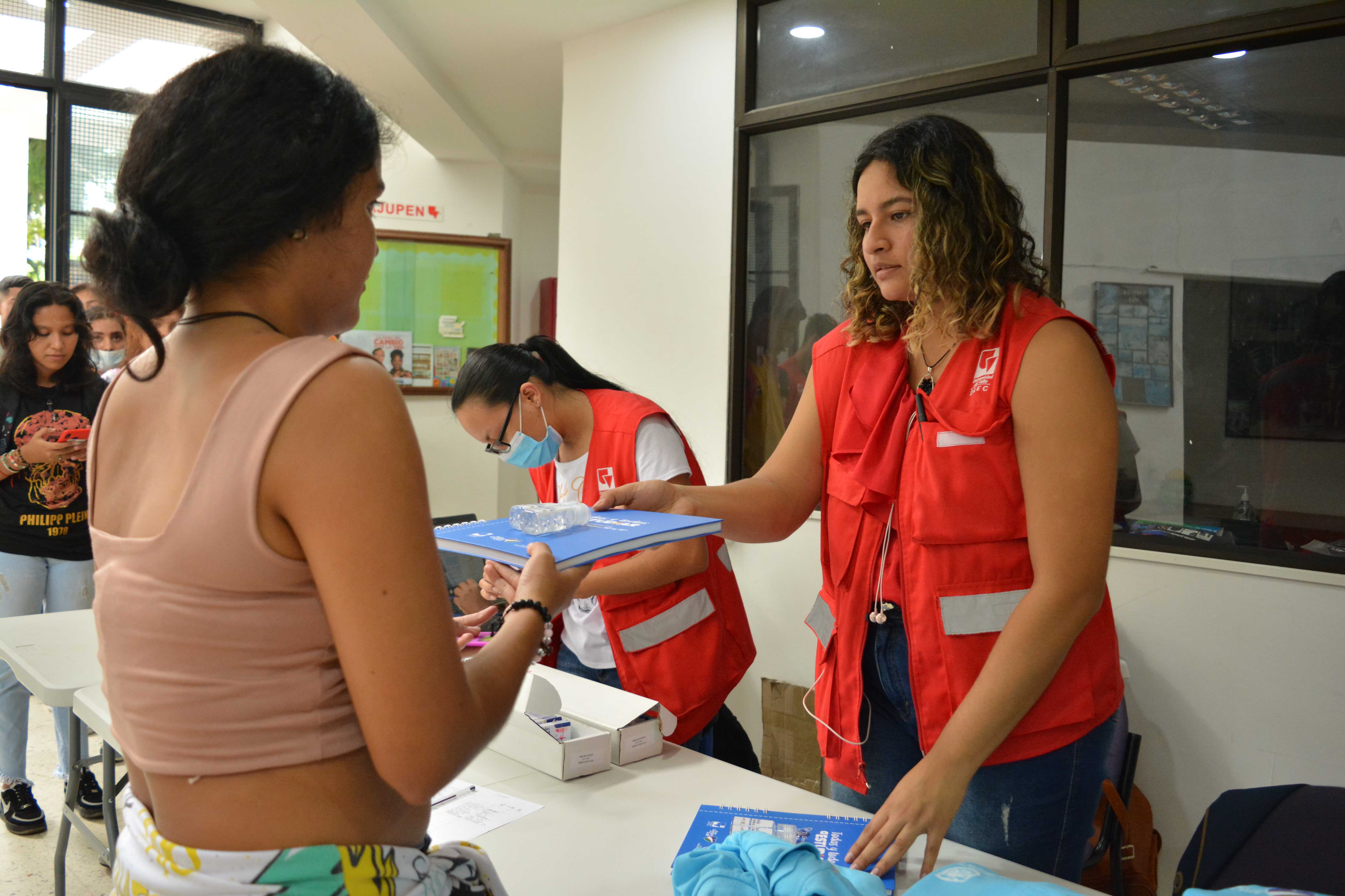 Escenario para la entrega de kits académicos que estaban pendientes de la Línea 3: Talentos Saber 10º y 11º. Algunos beneficiarios(as) que no asistieron a la primera sesión de entrega, tuvieron la oportunidad de reclamar el kit completo en este encuentro o complementarlo; el espacio de entrega fue en el edificio Ágora de la Universidad del Valle – Meléndez.