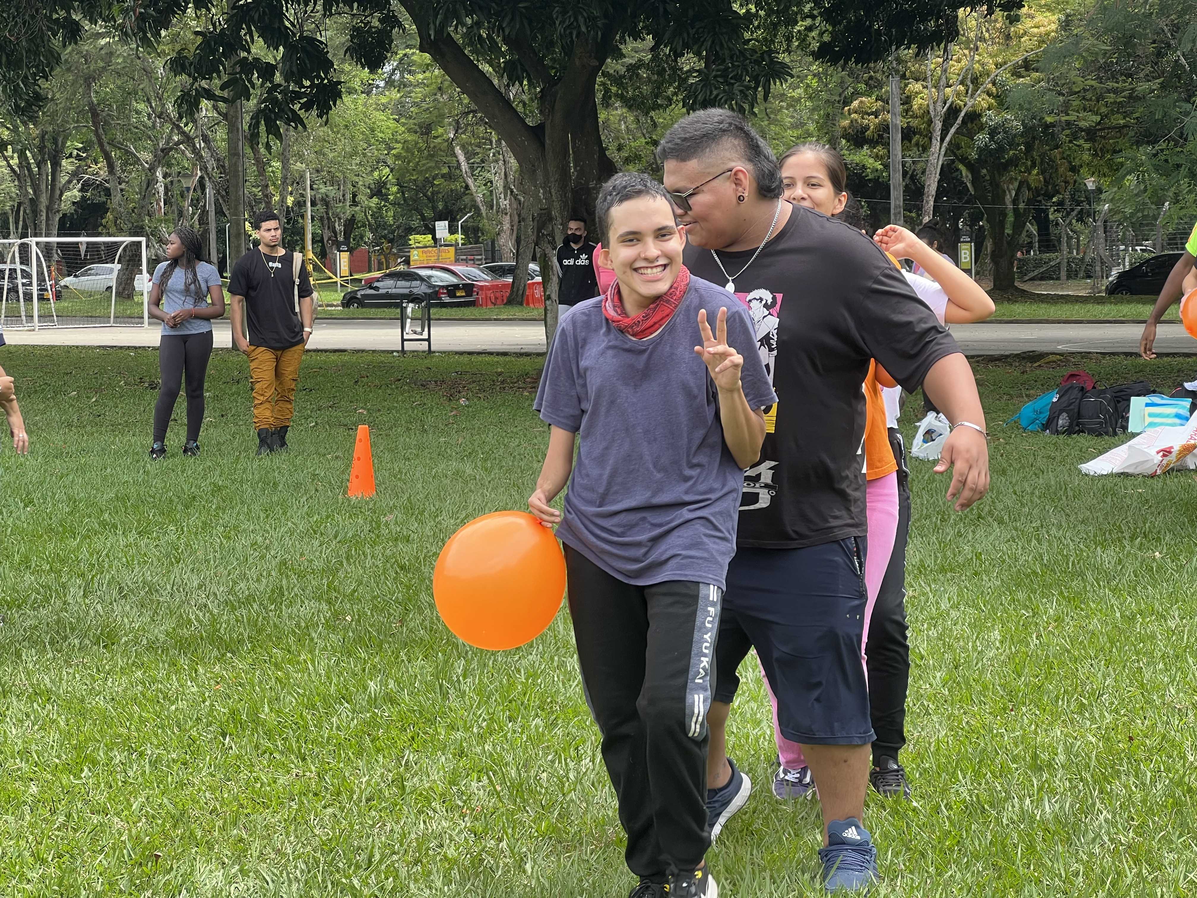 Actividad de cierre donde los beneficiarios de la línea 1 compartieron en una yincana deportiva. Este espacio contó con el acompañamiento de los docentes del área de Deportes y Salud y se desarrollaron actividades para fortalecer la actividad física de los jóvenes. Las competencias se realizaron en las canchas de la Universidad del Valle, Meléndez.