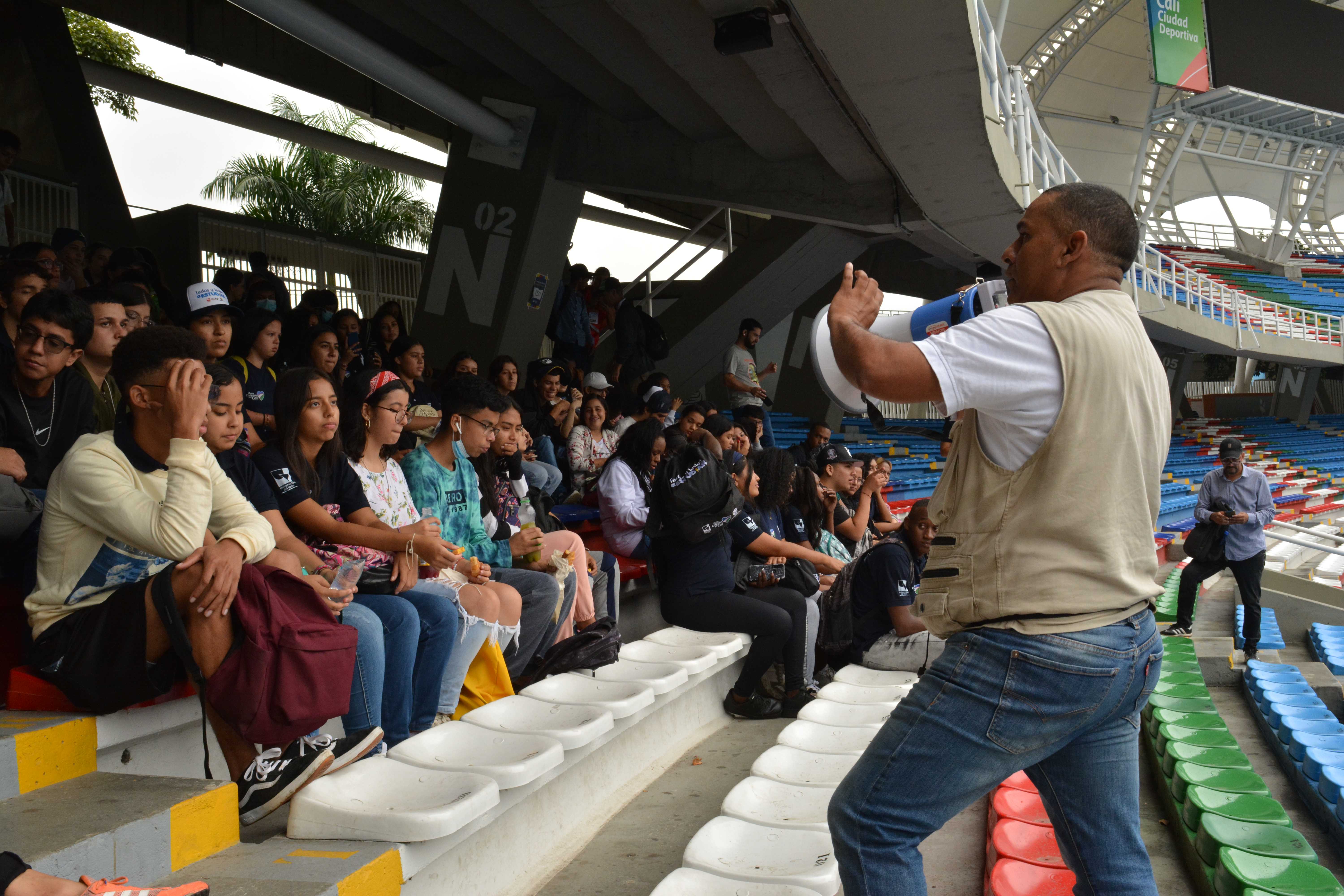 Jornada de Acción Ciudadana para la apropiación de lugares emblemáticos de Cali por parte de los beneficiarios del programa. En esta ocasión, transitaron por el complejo deportivo de las canchas panamericanas y descubrieron los diferentes deportes que se practican en este espacio.