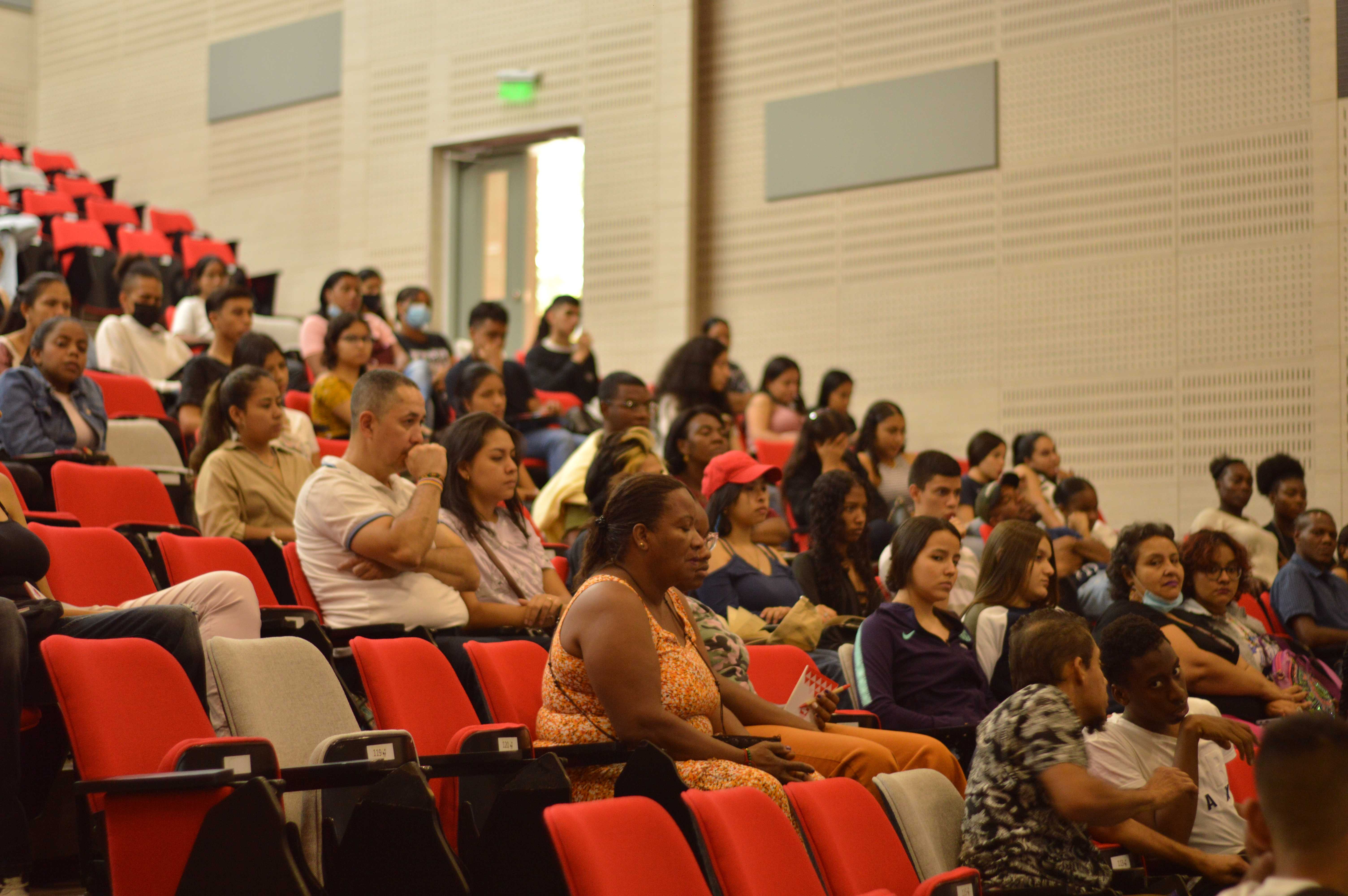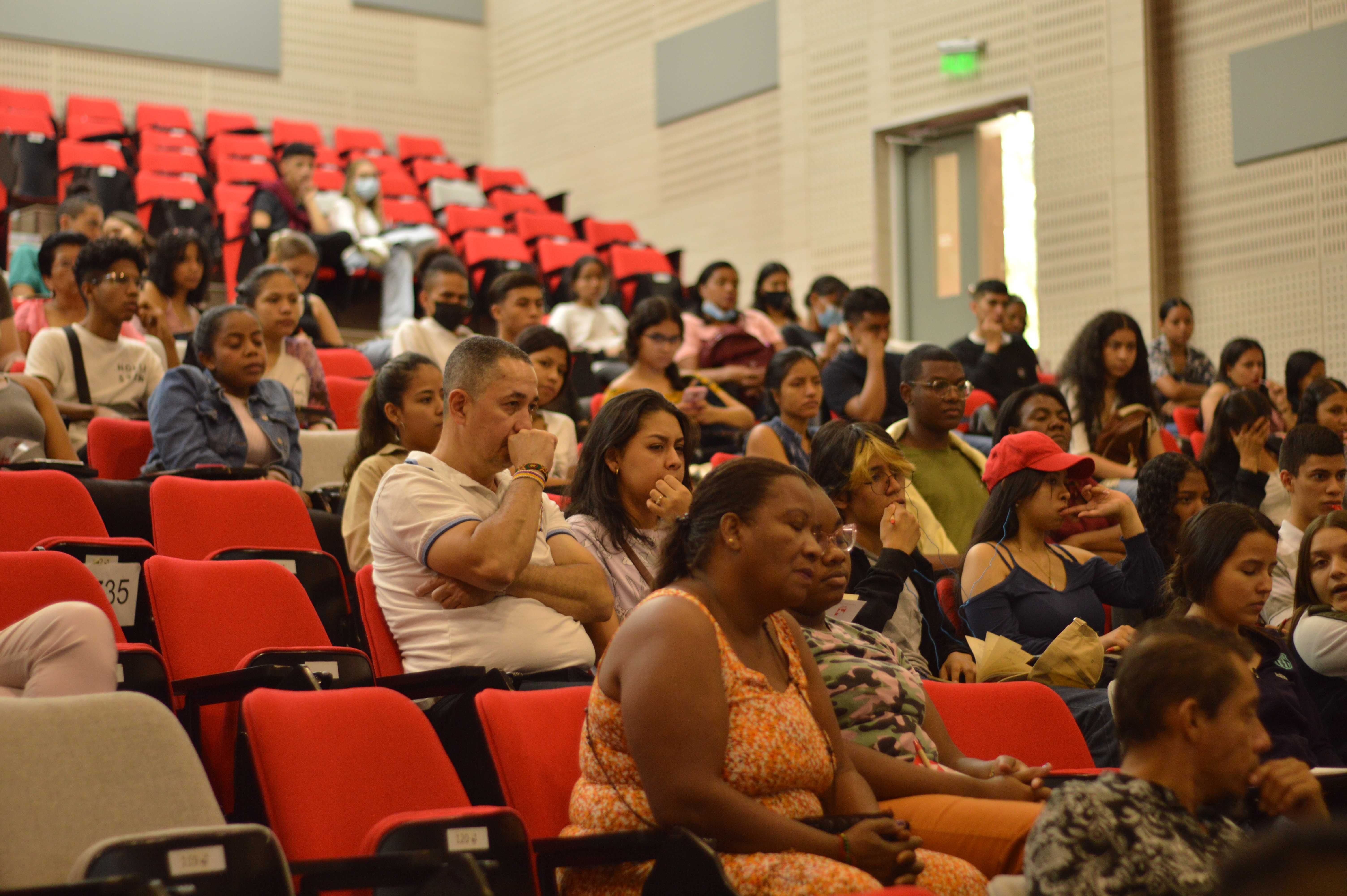 Encuentro realizado con los beneficiarios de las líneas 2 y 3 para conocer los programas de la universidad, sus puntajes y el proceso de admisión. Se contó con el apoyo de la Dirección de Extensión de la Universidad del Valle y su programa de visitas institucionales; el espacio de encuentro fue la Facultad de Ingeniería, Universidad del Valle.